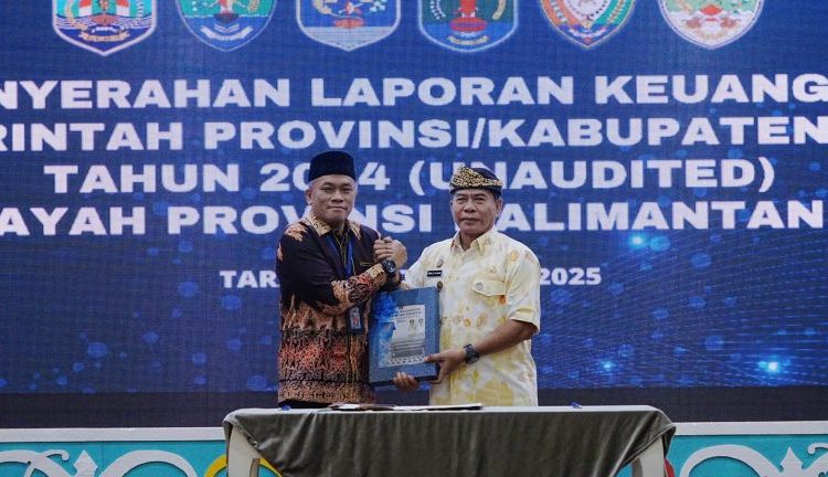 TARAKAN – Gubernur Kalimantan Utara (Kaltara) Dr. H. Zainal A. Paliwang, S.H., M.Hum., menyerahkan Laporan Keuangan Pemerintah Daerah (LKPD) Unaudited Tahun Anggaran 2024 kepada Kepala Badan Pemeriksa Keuangan (BPK) RI Perwakilan Provinsi Kaltara Dwi Sabardiana, S.E., M.A., Cfra., CSFA., MM., bertempat di Kantor BPK Perwakilan Kaltara di Kota Tarakan, Kamis (27/3).