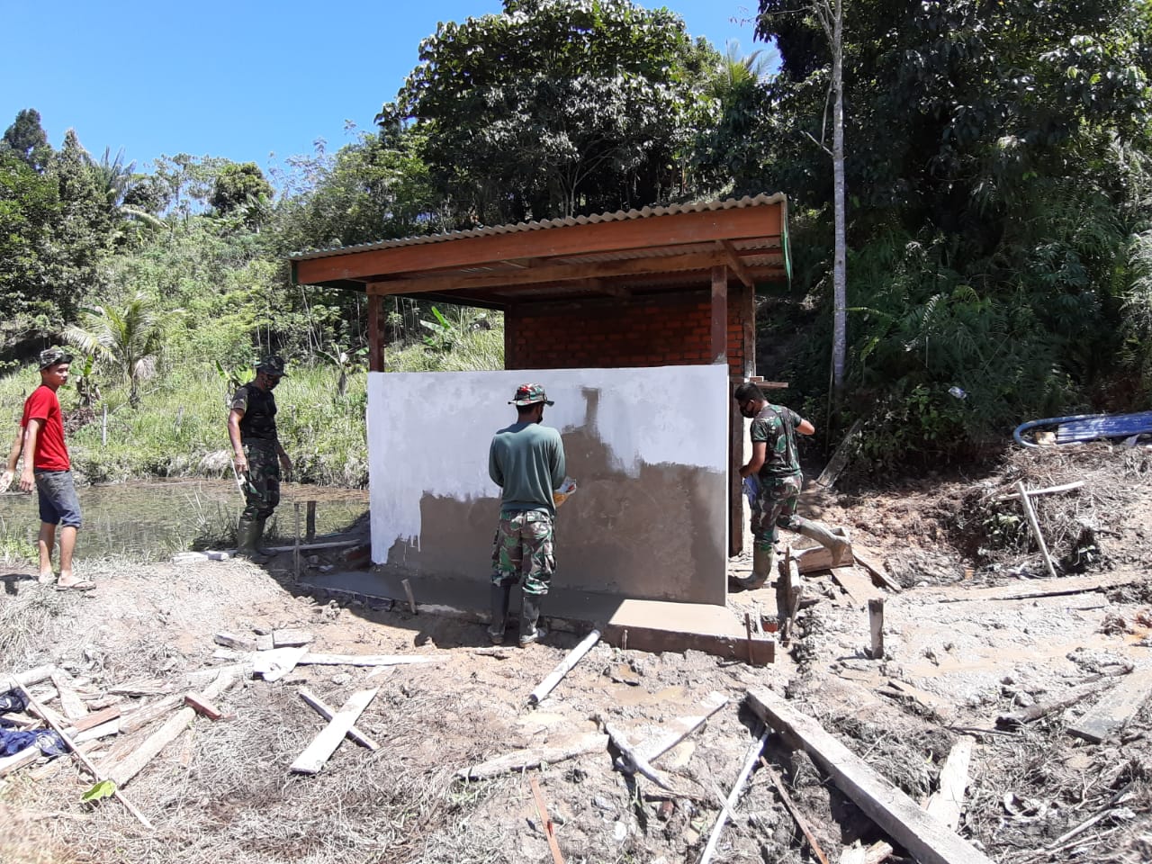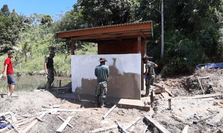 Nunukan – Tinggal sebentar lagi, pembangunan penampungan air bersih selesai dikerjakan oleh Satgas TMDM ke 111 Wilayah Perbatasan Kodim 0911/Nunukan. Sesuai rencana awal pada penampungan air tersebut akan dipasang 1 mesin pompa air, yang akan dialirkan menuju tandoor air dekat bangunan MCK.