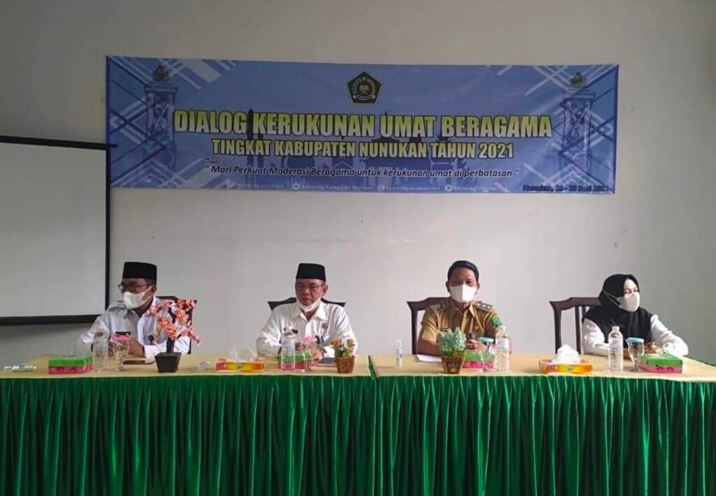 NUNUKAN – Wakil Bupati H. Hanafiah SE.,M.Si menghadiri acara oembukaan Dialog Kerukunan Umat Beragama Tingkat Kabupaten Nunukan Tahun 2021 yang dilaksanakan oelh Kantor Kementerian Agama Kabupaten Nunukan di Raing pertemuan Hotel Fortune, (28/06).