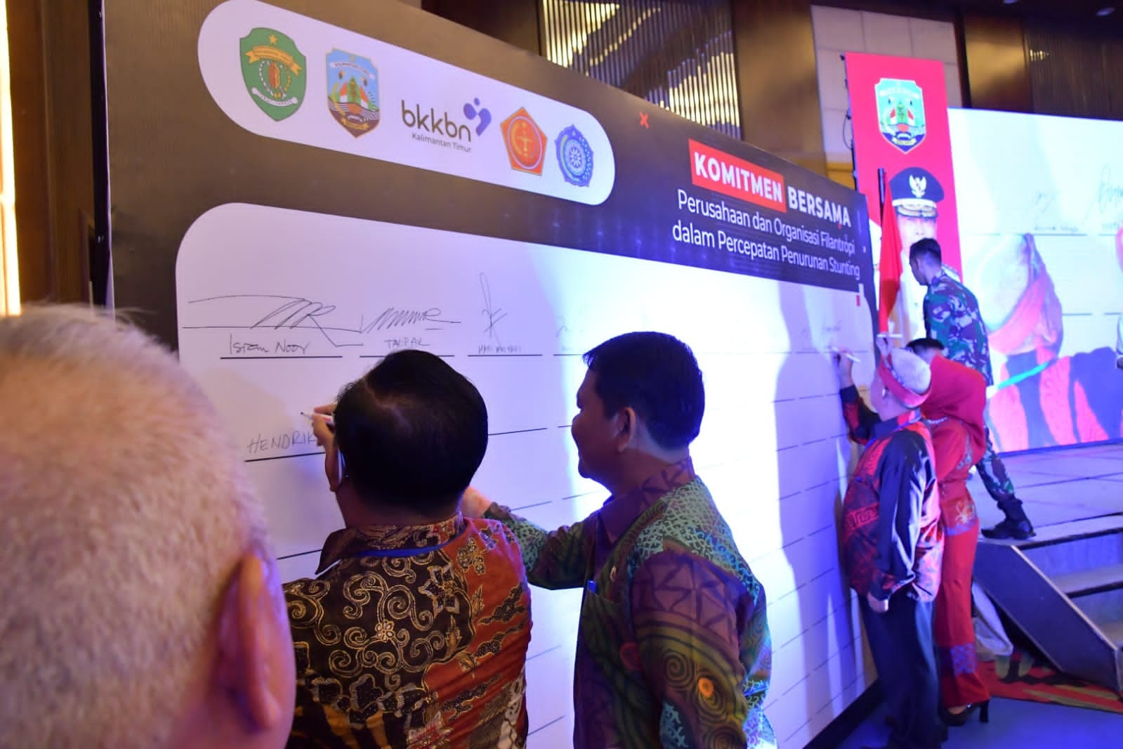 Usai pemberian sambutan dilanjutkan dengan penandatanganan komitmen dalam percepatan penurunan bersama dengan Gubernur Kalimantan timur dan wakil Gubernur Kaltim, Danrem, serta pengusaha, ketua TPPS se-kalimantan Timur dan Kaltara, Wakil Bupati Nunukan H Hanafiah juga selaku Ketua tim Percepatan Penurunan Stunting (TPPS) Kabupaten Nunukan.