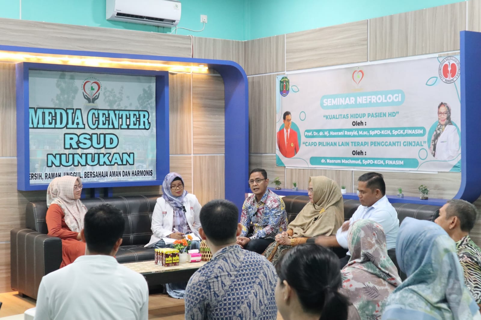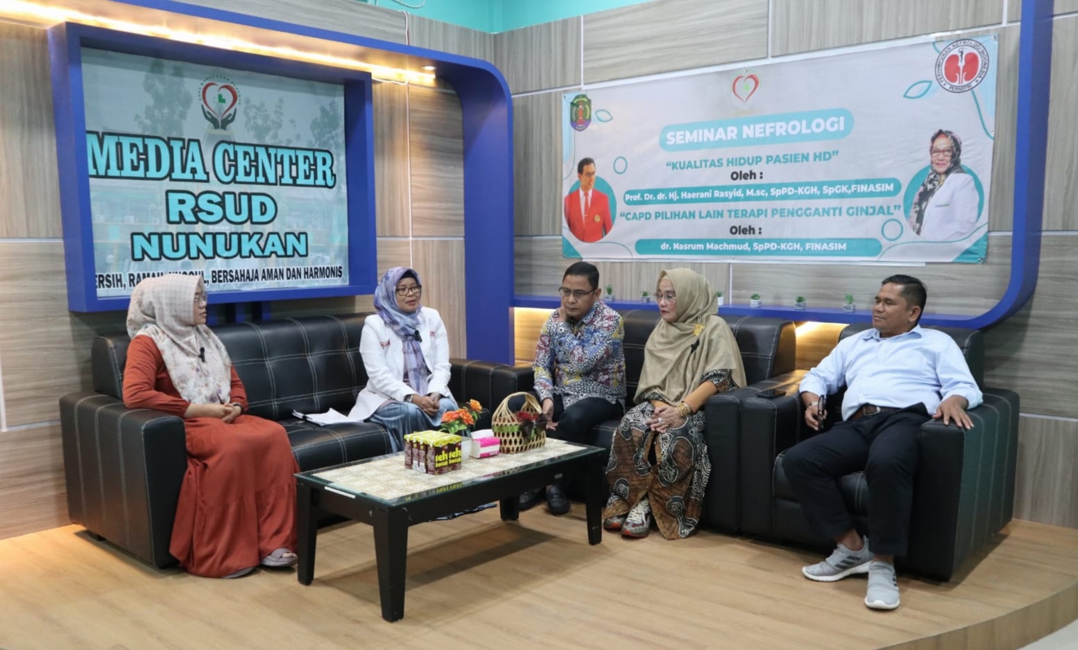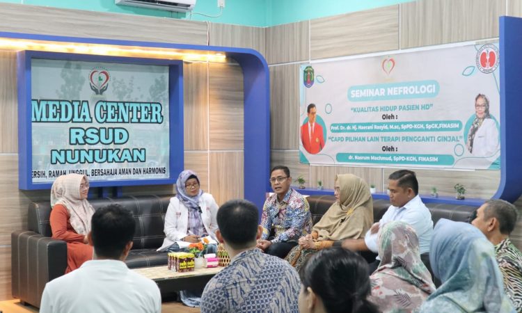 NUNUKAN – Disiarkan live LPS Radio dan Media Online BERANDANKRI, Rumah Sakit Umum Daerah (RSUD) Kabupaten Nunukan bersama Perhimpunan Nefrologi Indonesia (Pernefri) gelar seminar terkait Kualitas Hidup Pasien Hemodialisis (HD) dan Continous Ambulatory Peritoneal Dialysis (CAPD) Pilihan Lain Terapi Pengganti Ginjal, bertempat di ruangan Media Center RSUD Nunukan, Kamis (28/09/2023) malam.