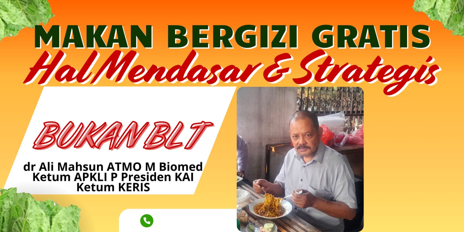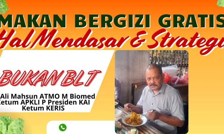 Terkait hal mendasar dan strategis Program Makan Bergizi Gratis Pemerintahan RI 2024-2029 dibawah kepemimpinan Presiden Jenderal TNI (Pur) H Prabowo Subianto disampaikan oleh dr Ali Mahsun ATMO M Biomed, Ketua Umum APKLI Perjuangan, Presiden Kawulo Alit Indonesia (KAI) dan Ketua Umum Komite Ekonomi Rakyat Indonesia (KERIS) dikawasan kampus UI Depok Jawa Barat Sabtu 20 Juli 2024. Program makan bergizi gratis untuk ibu hamil, balita, anak sekolah dan santri, paling tidak ada 3 hal mendasar dan strategis yang akan dicapai Indonesia. Pertama, mencegah atau menurunkan angka stunting.