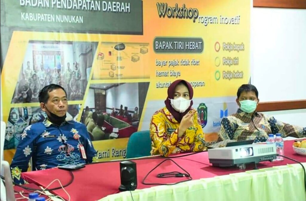 NUNUKAN – Selain memberi arahan pada Apel Pegi bersama Kepala Perangkat Daerah serta pejabat administrator di lingkungan PemKab Nunukan di hari pertama masuk kerjanya pasca dilantik sebagai Bupati dan wakil Bupati Nunukan Masa Jabatan 2021 – 2024, Bupati Nunukan Hj. Asmin Laura Hafid dan H. Hanafiah mengisi hari pertamanya masuk kerja dengan mengunjungi dan menyaksikan ujicoba aplikasi BAPAK TIRI HEBAT(Akronim dari : Bayar Pajak Tidak Ribet Hemat Biaya dan Akuntabel) di Bengkel (Workshop) BTH Kantor Badan Pendapatan Daerah (Bapenda) Kabupaten Nunukan, Lt. II Kantor Bupati Nunukan, Kamis (03/06).