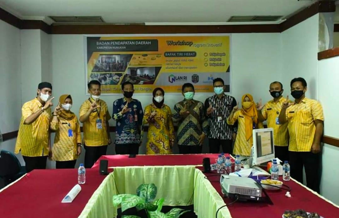 NUNUKAN – Selain memberi arahan pada Apel Pegi bersama Kepala Perangkat Daerah serta pejabat administrator di lingkungan PemKab Nunukan di hari pertama masuk kerjanya pasca dilantik sebagai Bupati dan wakil Bupati Nunukan Masa Jabatan 2021 – 2024, Bupati Nunukan Hj. Asmin Laura Hafid dan H. Hanafiah mengisi hari pertamanya masuk kerja dengan mengunjungi dan menyaksikan ujicoba aplikasi BAPAK TIRI HEBAT(Akronim dari : Bayar Pajak Tidak Ribet Hemat Biaya dan Akuntabel) di Bengkel (Workshop) BTH Kantor Badan Pendapatan Daerah (Bapenda) Kabupaten Nunukan, Lt. II Kantor Bupati Nunukan, Kamis (03/06).