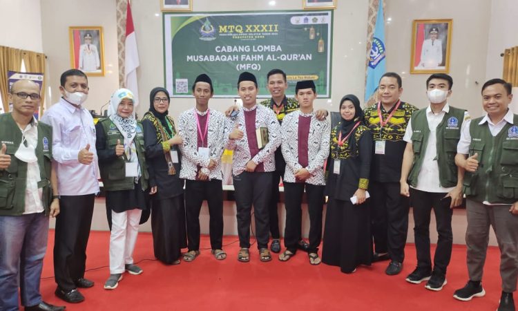 Usai lomba ketiga tim finalis peraih juara MTQ Provinsi Cabang Fahmil Qur’an tampak bergembira bersama Official, pendamping tim serta keluarga. (Team media)