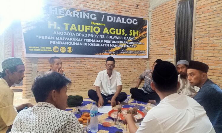 Mamuju tengah , Sulawesi barat .Pada hari Rabu , tanggal 05 05 2021 di pangale , H. Taufiq Agus SH kembali melaksanakan kegiatan hearing dialog dengan tema ” peran masyarakat terhadap pertumbuhan ekonomi di Mamuju tengah “pada kesempatan kali ini , kembali H Taufik menyampaikan bahwa peran masyarakat sangatlah penting di dalam memajukan sektor ekonomi olehnya itu kembali mengajak kepada masyarakat agar lebih banyak mengambil peran serta dalam membantu pemerintah untuk memajukan ekonomi khususnya dalam sektor pertanian di daerah Mamuju tengah, sebagaimana diketahui bahwa Mamuju tengah khususnya memiliki sumber daya alam yang besar yang mempunyai potensi untuk dikelolah khususnya dalam sektor pertanian, perkebunan, kehutanan, peternakan dan perikanan, baik budidaya ikan air tawar dan air asing yang bisa dijadikan sebagai ujung tombak pembangunan peningkatan ekonomi masyarakat , dapat meningkatkan daya beli yang mampu mendorong pertumbuhan ekonomi sehingga dapat menciptakan kehidupan masyarakat ke tingkat kesejahteraan yang lebih baik.