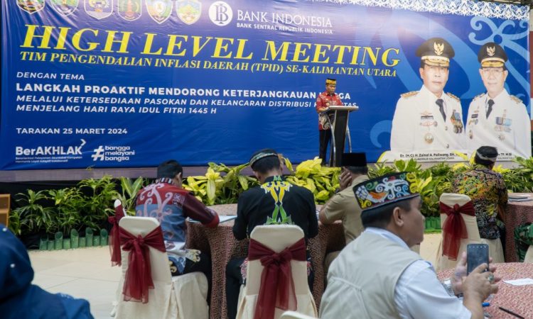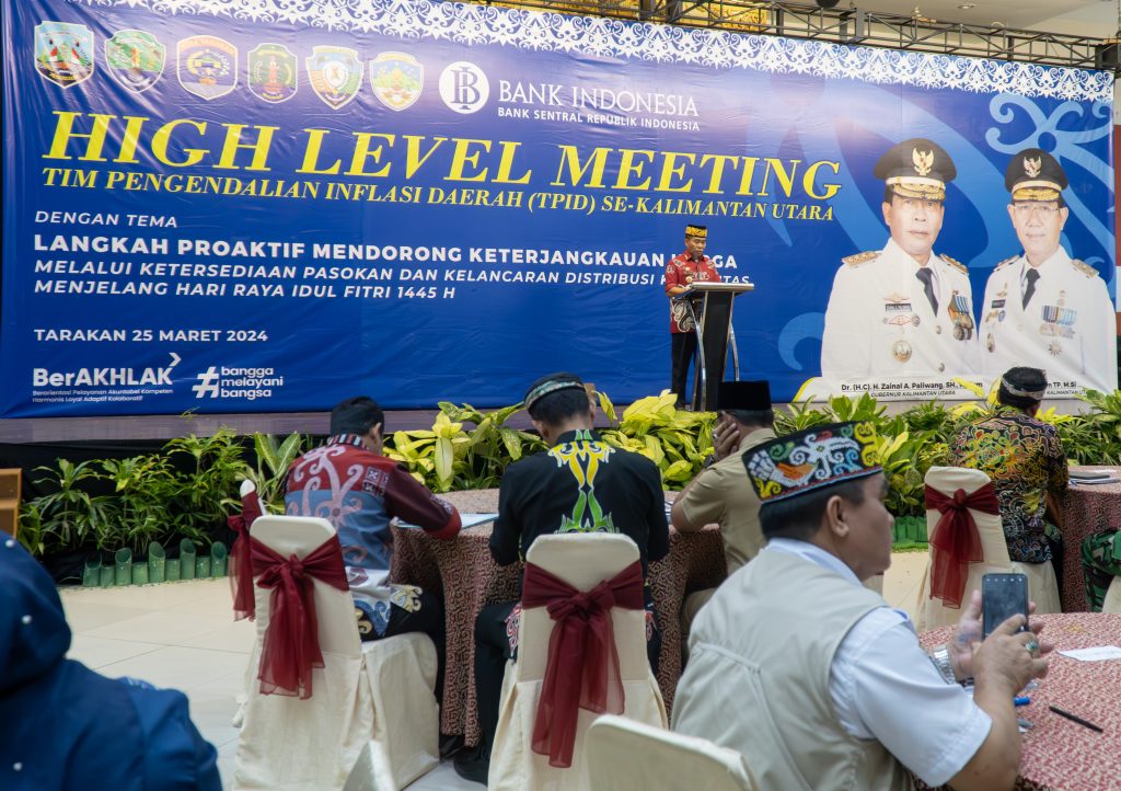 TARAKAN – Dalam upaya menjaga laju inflasi tetap terkendali menjelang hari raya Idul Fitri 1445 H, Pemerintah Provinsi Kalimantan Utara (Kaltara) menggelar High Level Meeting Tim Pengendalian Inflasi Daerah (HLM TPID) se-Kalimantan Utara Tahun 2024, bertempat di Hotel Tarakan Plaza, Senin (25/3).