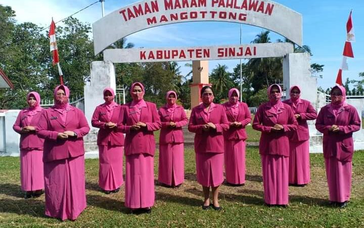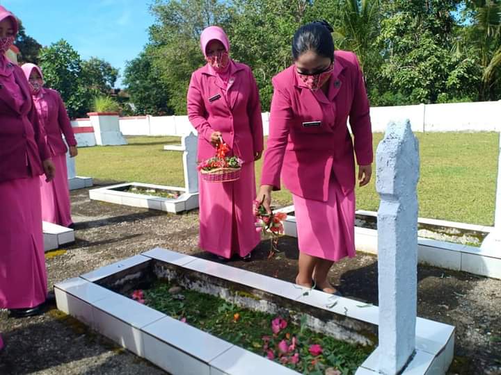 Sinjai -Berandankrinews.com. Dalam rangka Memperingati Hari Kesatuan Gerak Bhayangkari (HKGB) Ke- 69 tahun 2021 Bhayangkari Cabang Sinjai melakukan ziarah rombongan ke Taman Makan Pahlawan (TMP) Manggottong, di Desa Saukang, Kecamatan Sinjai Timur, Kabupaten Sinjai. Senin pagi (18/10/2021).