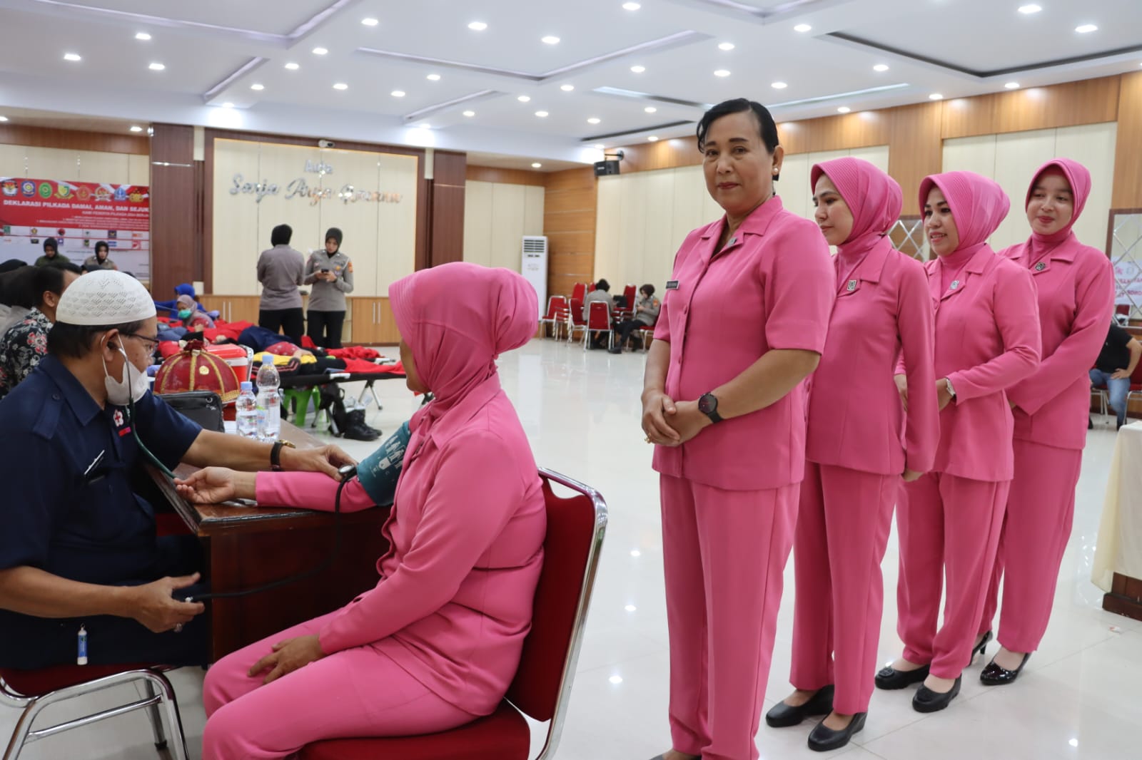 Kegiatan Bakti Sosial Donor Darah yang di laksanakan Polwan Polres Bone bersama Bhayangkari Cabang Bone dalam rangka untuk memperingati Hari Ulang Tahun Polisi Wanita ke 76 Tahun.