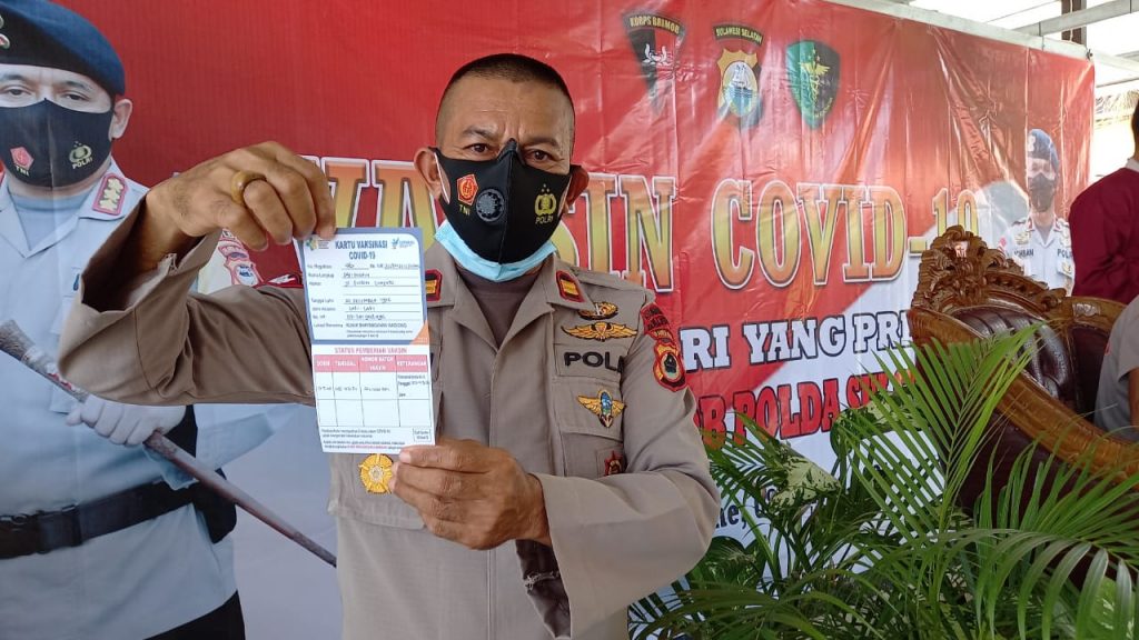 ” Setelah divaksin saya tidak merasakan gejala atau efek yang berlebih dari vaksin ini, hanya saya merasa sedikit mengantuk dan lapar, jadi saran saya sebelum menerima vaksin Covid 19 dianjurkan untuk tidur yang cukup dan makan terlebih dahulu sehingga efek dari kantuk dan lapar akibat vaksinasi dapat diminimalisir,” kata AKP Andi Muhammad Syafe’i.