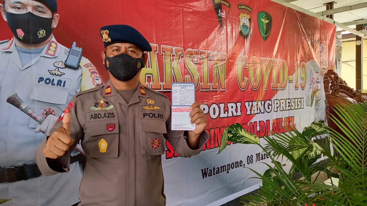 ” Setelah divaksin saya tidak merasakan gejala atau efek yang berlebih dari vaksin ini, hanya saya merasa sedikit mengantuk dan lapar, jadi saran saya sebelum menerima vaksin Covid 19 dianjurkan untuk tidur yang cukup dan makan terlebih dahulu sehingga efek dari kantuk dan lapar akibat vaksinasi dapat diminimalisir,” kata AKP Andi Muhammad Syafe’i.