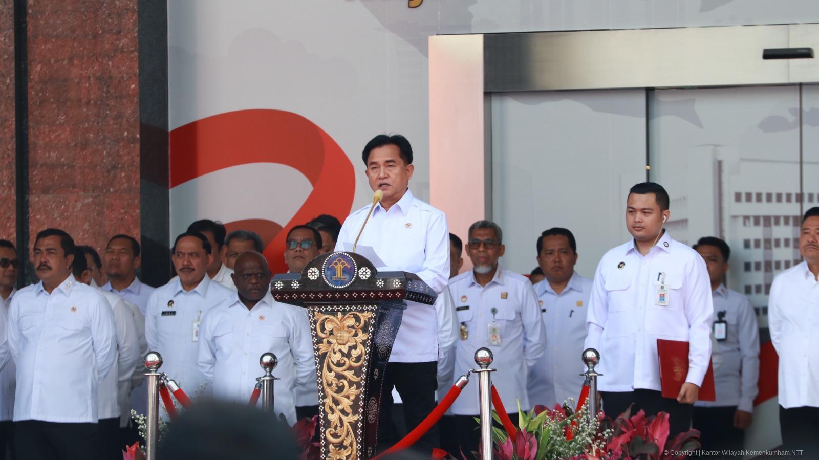 Apel pagi tersebut mengusung tema “Kerja Bersama, untuk Indonesia Emas 2045” dan dipimpin langsung oleh Menteri Koordinator Bidang Hukum, Hak Asasi Manusia, Imigrasi, dan Pemasyarakatan, Prof. Yusril Ihza Mahendra dan dalam amanatnya mengajak kepada seluruh Aparatur Sipil Negara pada Kementerian Koordinator Bidang Hukum, Hak Asasi Manusia, Imigrasi, dan Pemasyarakatan, Kementerian Hukum, Kementerian Hak Asasi Manusia, dan Kementerian Imigrasi dan Pemasyarakatan untuk melaksanakan :