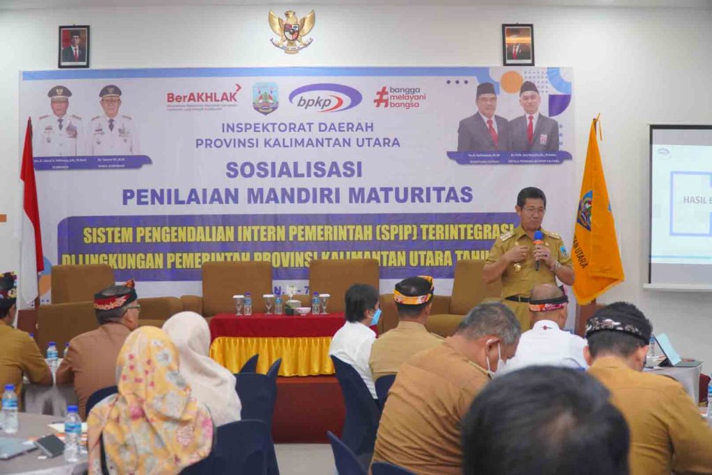 TARAKAN – Inspektorat Daerah Provinsi Kalimantan Utara (Kaltara) menggelar Sosialisasi Penilaian Mandiri Maturitas Sistem Pengendalian Intern Pemerintah (SPIP) Terintegrasi di Lingkungan Pemerintah Provinsi Kalimantan Utara Tahun 2023.