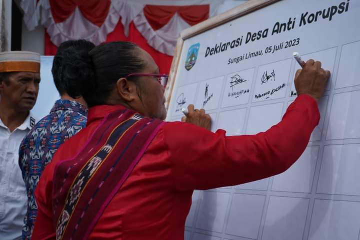 Diakhir acara Wakil Bupati Nunukan bersama TIM KPK RI beserta para tamu undangan menyaksikan Penandatanganan Komitmen Bersama Mewujudkan Desa Sungai Limau sebagai Percontohan Desa Anti Korupsi yang dilakukan oleh seluruh Peserta Bimtek.