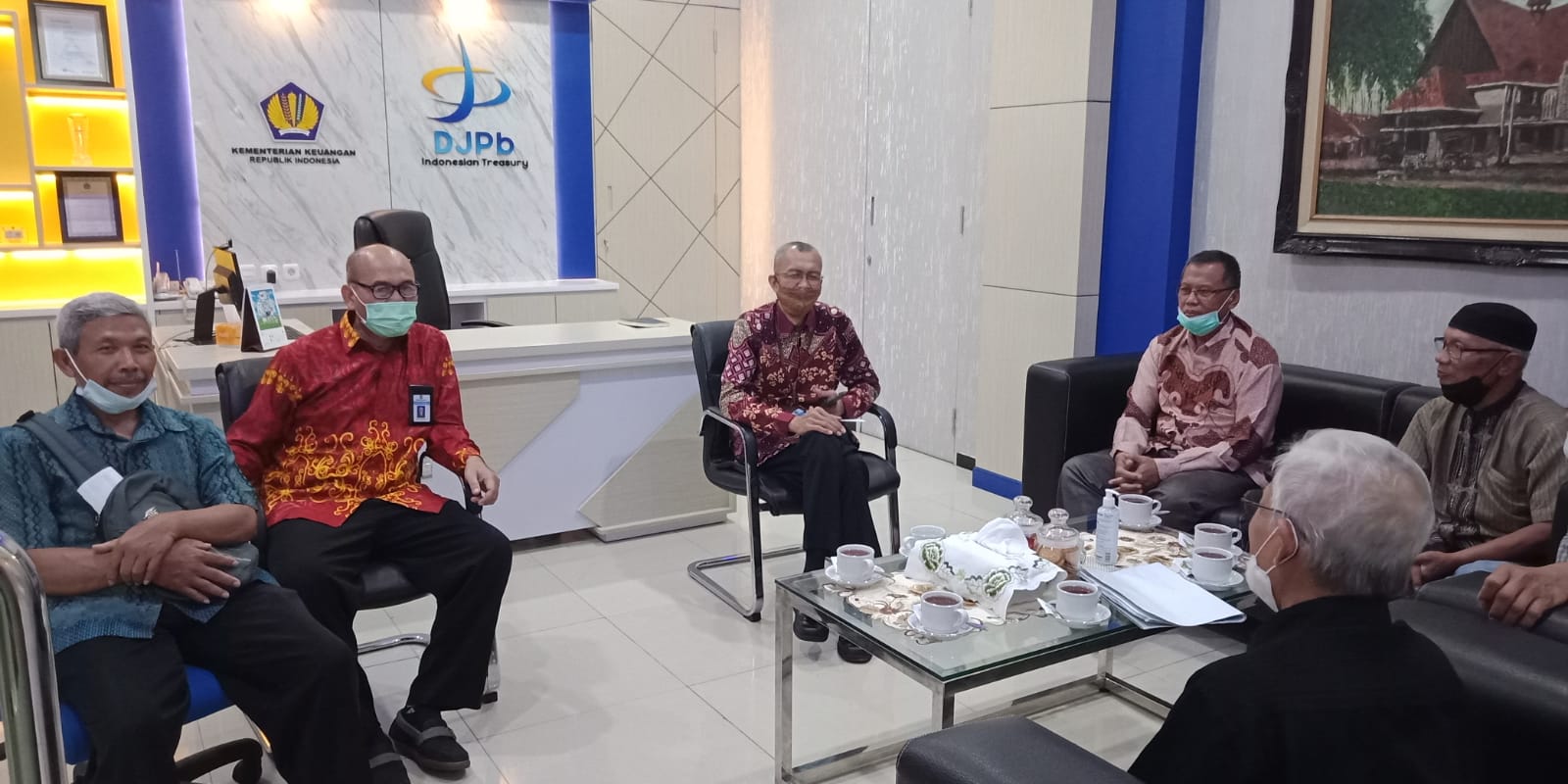 Kepala KPPN Malang, Rintok Juhirman didampingi Kepala Subbag Umum, Heru Santosa menerima kunjungan beberapa pensiunan Kementerian Keuangan yang berdomilisi di Malang, bertempat di ruang kerja Kepala KPPN Malang dengan tetap mematuhi protokol kesehatan, Selasa (17/05/2022).