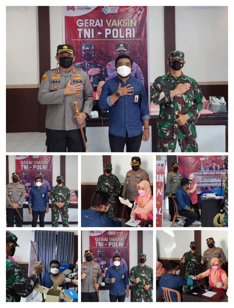 Sinjai -Berandankrinews.com. Kepala Kepolisian Resor Sinjai, Ajun Komisaris Besar Polisi (Akbp) Iwan Irmawan, S.Ik.,M.Si bersama Dandim 1424 Sinjai Letkol Inf Ely Asyer Sitompul S.Hub.Int meninjau langsung pelaksanaan vaksinasi massal Dosis 2 di Gerai Vaksin Presisi Aula Mapolres Sinjai. Sabtu pagi (24/7/2021).