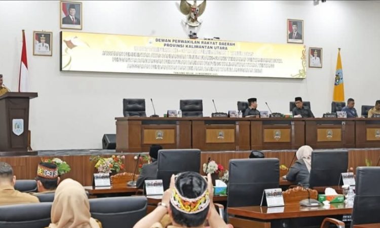 TANJUNG SELOR – Rapat Paripurna ke – 37 Masa Persidangan I Tahun 2025 dengan agenda Jawaban Pemerintah atas Pandangan Umum Fraksi-fraksi Terhadap Penyampaian Nota Pengantar Rancangan Peraturan Daerah Provinsi Kalimantan Utara tentang Anggaran Pendapatan dan Belanja Daerah Tahun Anggaran 2026.