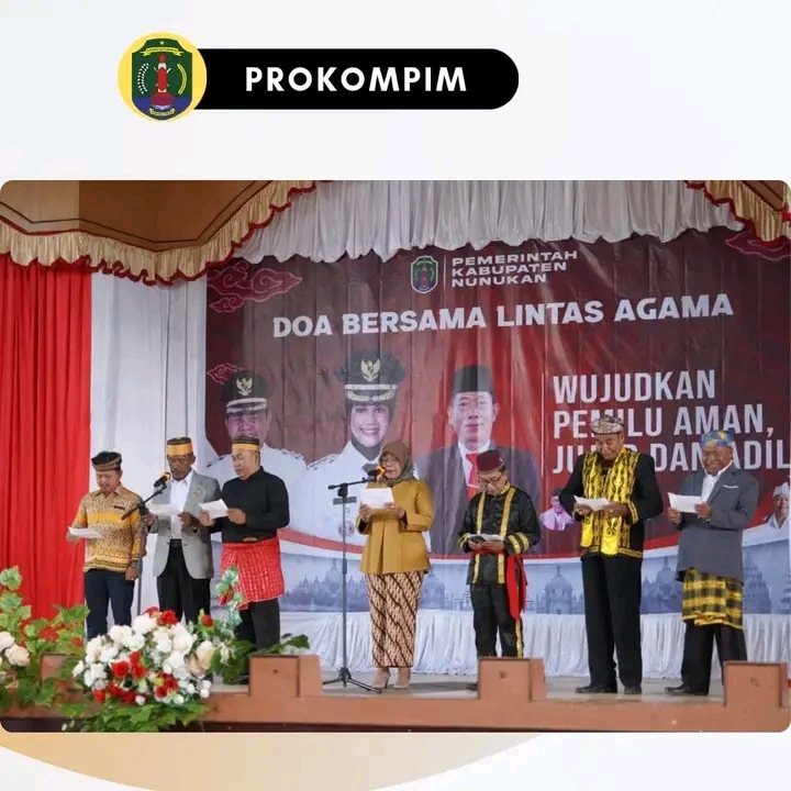 NUNUKAN- Pemerintah Kabupaten Nunukan melalui Badan Kesatuan Bangsa dan Politik (Kesbangpol) menggelar Doa Bersama Lintas Agama Dalam Rangka Pemilu 2024 yang diselenggarakan di GOR Nunukan, pada Jumat 9 Februari 2024.