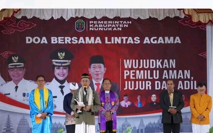 NUNUKAN- Pemerintah Kabupaten Nunukan melalui Badan Kesatuan Bangsa dan Politik (Kesbangpol) menggelar Doa Bersama Lintas Agama Dalam Rangka Pemilu 2024 yang diselenggarakan di GOR Nunukan, pada Jumat 9 Februari 2024.