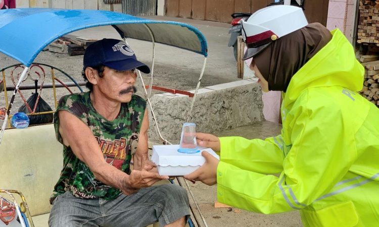 Kegiatan Jumat care polantas Bone Ini, Melibatkan Juga beberapa polwan lantas polres Bone, Dengan menyambangi setiap tukang becak yang ditemui lalu diberi nasi kotak , walaupun dalam keadaan hujan gerimis para Polantas Polwan tetap semangat menemui para tukang becak