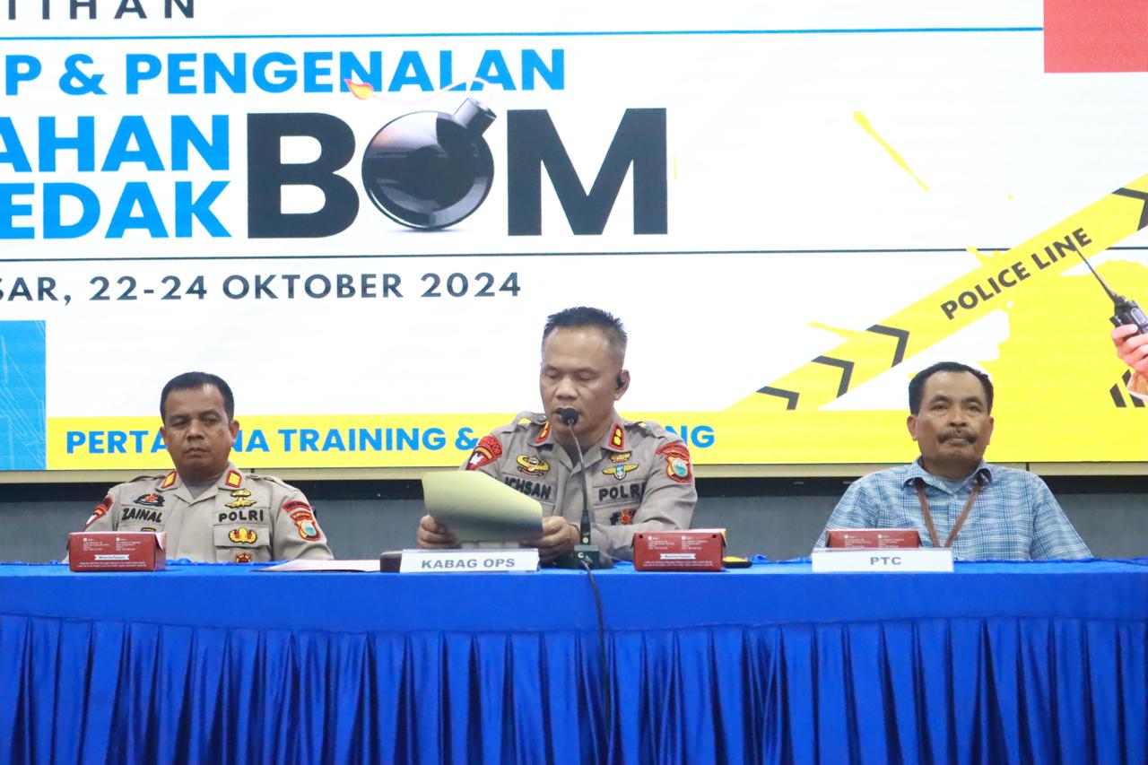 Makassar, Sulsel -Berandankrinews.com. Sat Brimob Polda Sulsel menggelar upacara penutupan Pelatihan TPTKP (Tindakan Pertama di Tempat Kejadian Perkara) dan Pengenalan Bahan Peledak / Bom yang dilaksanakan di Aula Lumentut Mako Batalyon A Pelopor Satbrimob Polda Sulsel Jl. Sultan Alauddin, Kamis (24/10/2024).