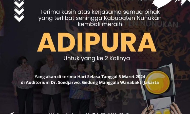 Sebelumnya, Kabupaten Nunukan telah menerima penghargaan Adipura pada tahun 2022 dari Kementrian Lingkungan Hidup dan Kehutanan (KLHK) Republik Indonesia (RI).