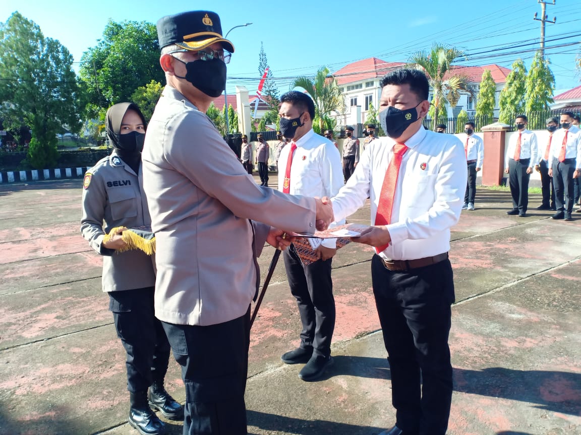 Kepada penerima penghargaan dari Kapolres Sinjai diberikan secara simbolis yang diupacarakan Bertempat dihalaman Mapolres Sinjai, Kamis (7/7/2022) pukul 08.00 wita yang dihadiri Wakapolres Sinjai Kompol Joko Sutrisno, para Kabag, Kasat, Kasubbag, Kasi, Perwira Staf dan segenap personel Polres Sinjai.