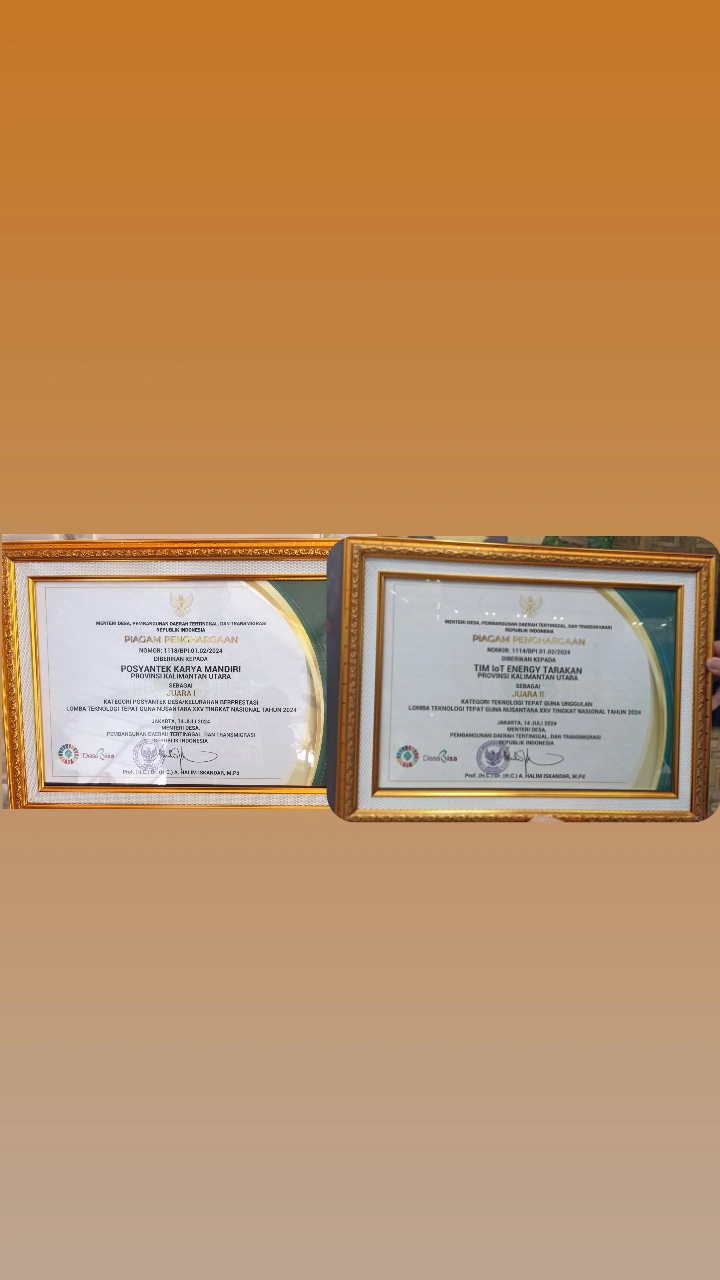“Juara 1 tingkat nasional kategori Pos Pelayanan Teknologi Tepat Guna (Posyantek TTG) diraih oleh Posyantek Karya Mandiri dari Desa Sempayang, Kabupaten Malinau di ketuai Joser Febrianto dan pembinanya Kepala Desa Sempayang Bapak Aprem,” ujarnya