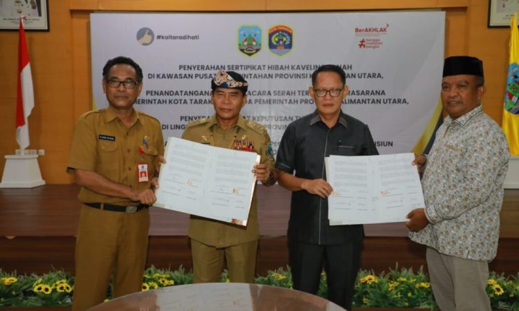 TARAKAN – Gubernur Kalimantan Utara, DR. (H.C). H. Zainal A Paliwang, M.Hum., menyerahkan Sertifikat Hibah Kavling Tanah di kawasan Pusat Pemerintah Provinsi (Pemprov) Kalimantan Utara, berlangsung di gedung aula Rumah Sakit Umum Daerah (RSUD) dr. H. Jusuf SK Kota Tarakan, Senin, (3/6).