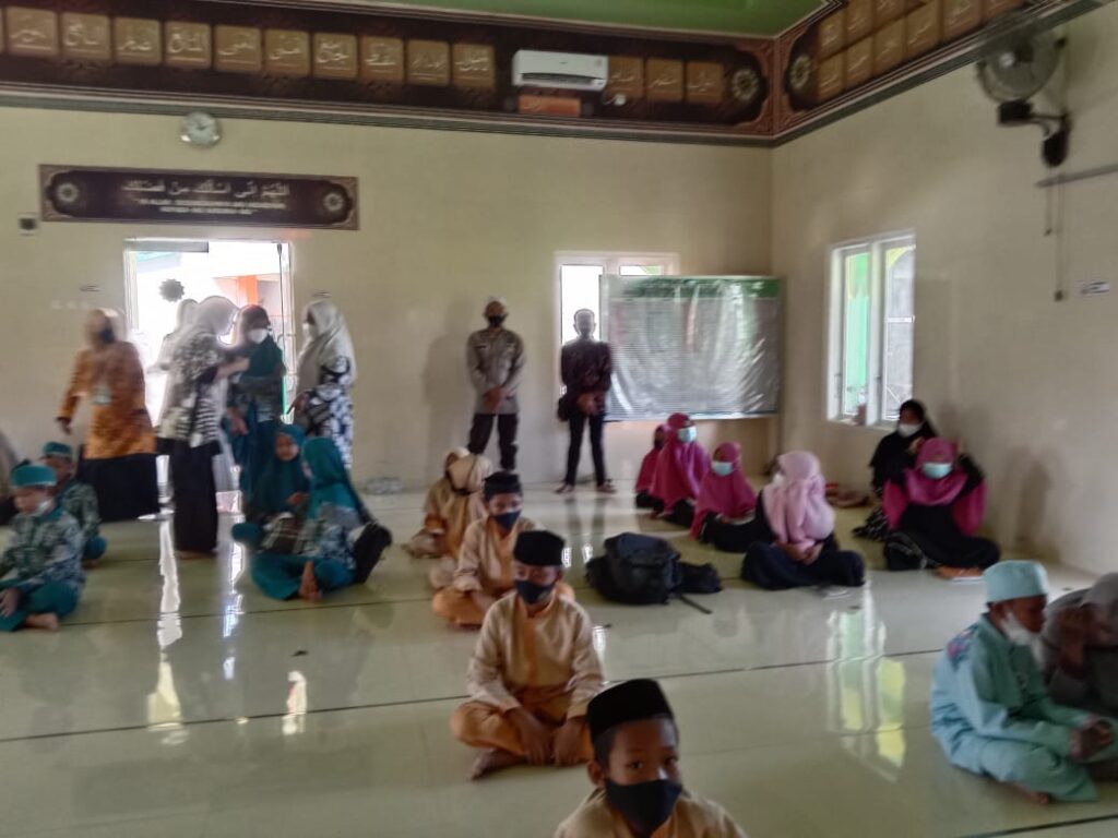 Sebagai pengemban fungsi preemtif, Kanit Binmas hadir memberikan support kepada santri peserta Munaqasyah (Ujian TPQ) sekaligus memastikan penerapan Protokol Kesehatan tetap dijalankan.