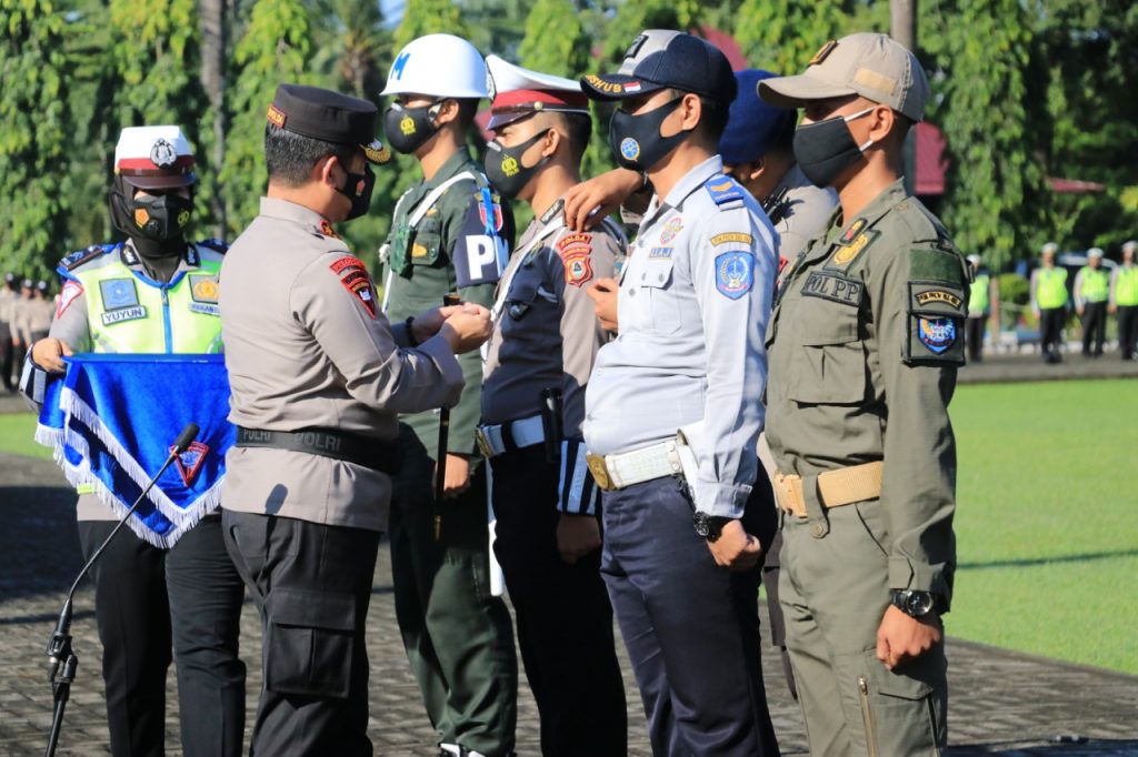 Kepolisian Daerah Sulawesi Selatan melaksanakan Gelar Pasukan Ops Kepolisian Mandiri Kewilayahan Keselamatan 2021, di Lapangan upacara Mapolda Sulsel,