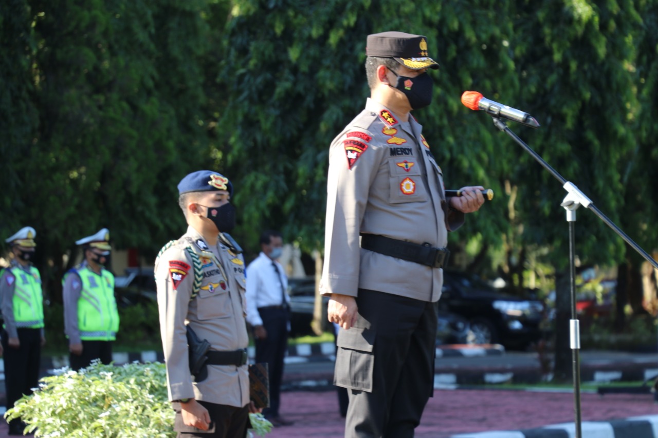 Kapolda Sulsel Irjen Pol Drs. Merdisyam MSi memimpin langsung apel yang dihadiri oleh seluruh Pejabat Utama Polda Sulsel tersebut.