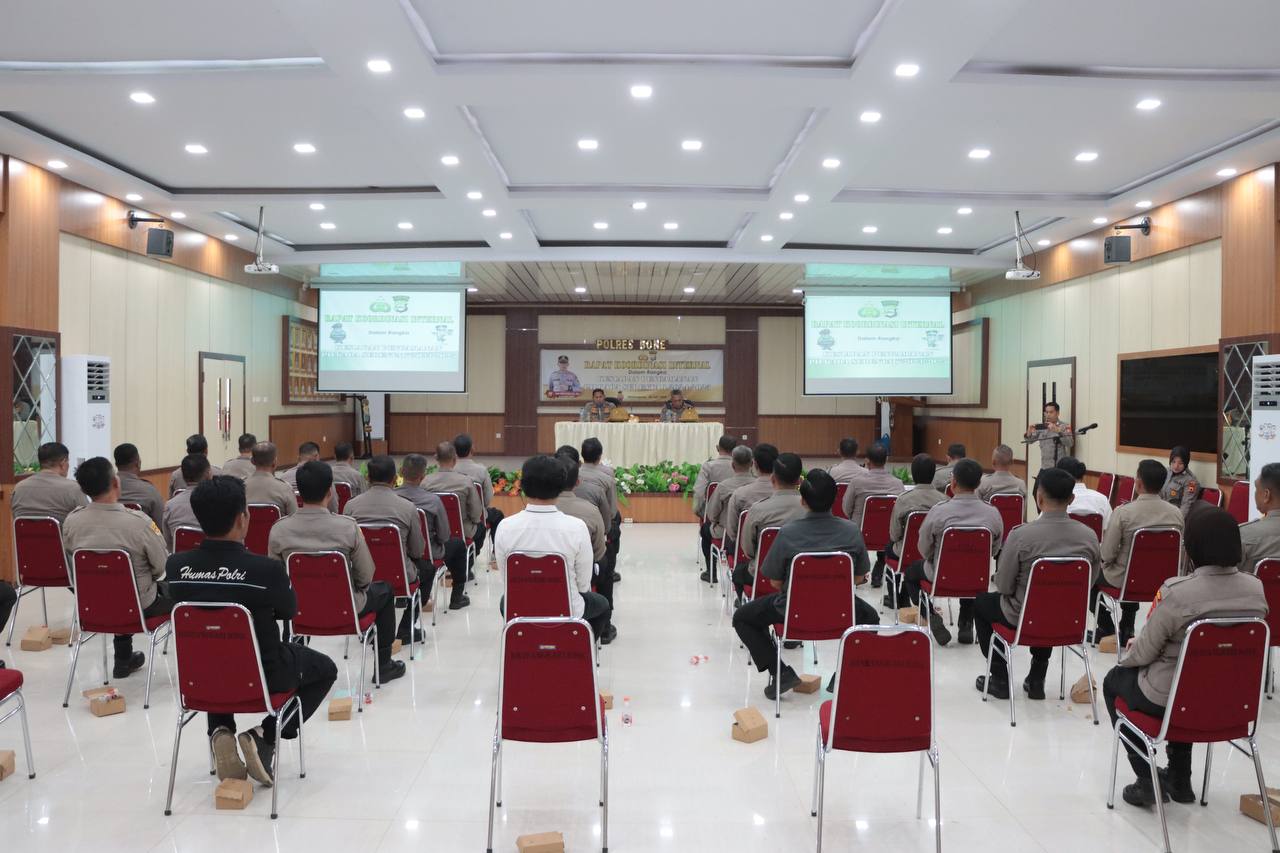 BONE -Berandankrinews.com. Kapolres Bone AKBP Erwin Syah, S.I.K.M.H Pimpin Rapat Koordinasi Internal jajaran Polres Bone dalam rangka kesiapan menghadapi Pemilihan Kepala Daerah tahun 2024 yang dilaksanakan di Aula Sarja Arya Racana. Senin (22/07/2024)
