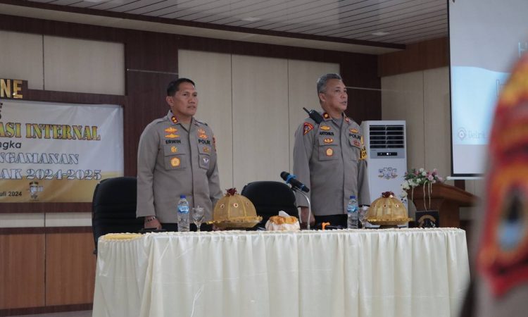 BONE -Berandankrinews.com. Kapolres Bone AKBP Erwin Syah, S.I.K.M.H Pimpin Rapat Koordinasi Internal jajaran Polres Bone dalam rangka kesiapan menghadapi Pemilihan Kepala Daerah tahun 2024 yang dilaksanakan di Aula Sarja Arya Racana. Senin (22/07/2024)