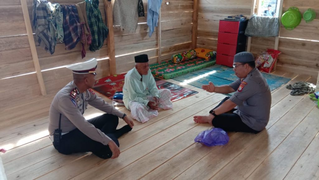 Didampingi Kasat Lantas AKP Muh Tamrin dan Kapolsek Kawasan Pelabuhan Bajoe,Kasat Polair, Kapolres Bone tampak menitipkan sejumlah pesan kepada kakek Baco diantaranya selalu menjaga kesehatan.