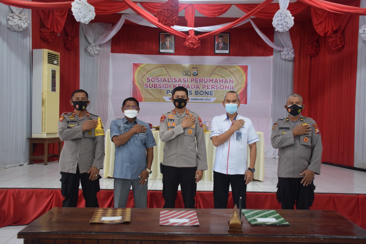 kami selaku pimpinan Kepolisian Resor Bone mengucapkan banyak terima kasih kepada bapak Direktur PT. Citra Sugina Utama dan Pimpinan Ban BTN Bone atas kerjasamanya,” tutur Try Handako Pihak developer nantinya akan menyediakan rumah bersubsidi yang berlokasi di Perumahan Puri Indah Permai, Jalan Sungai Pereman Kelurahan Tibojong, sekitar 1 KM dari Mapolres Bone.