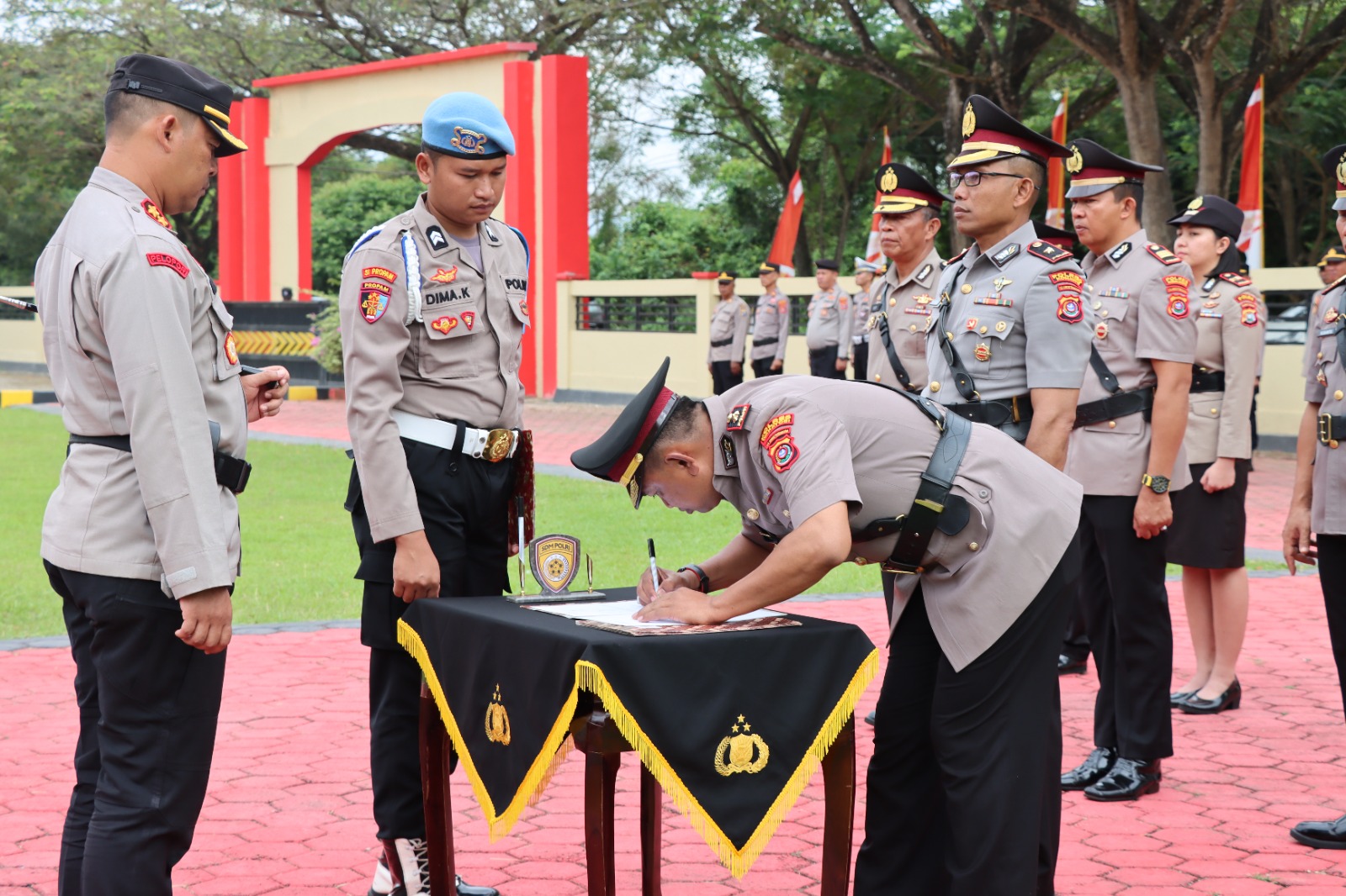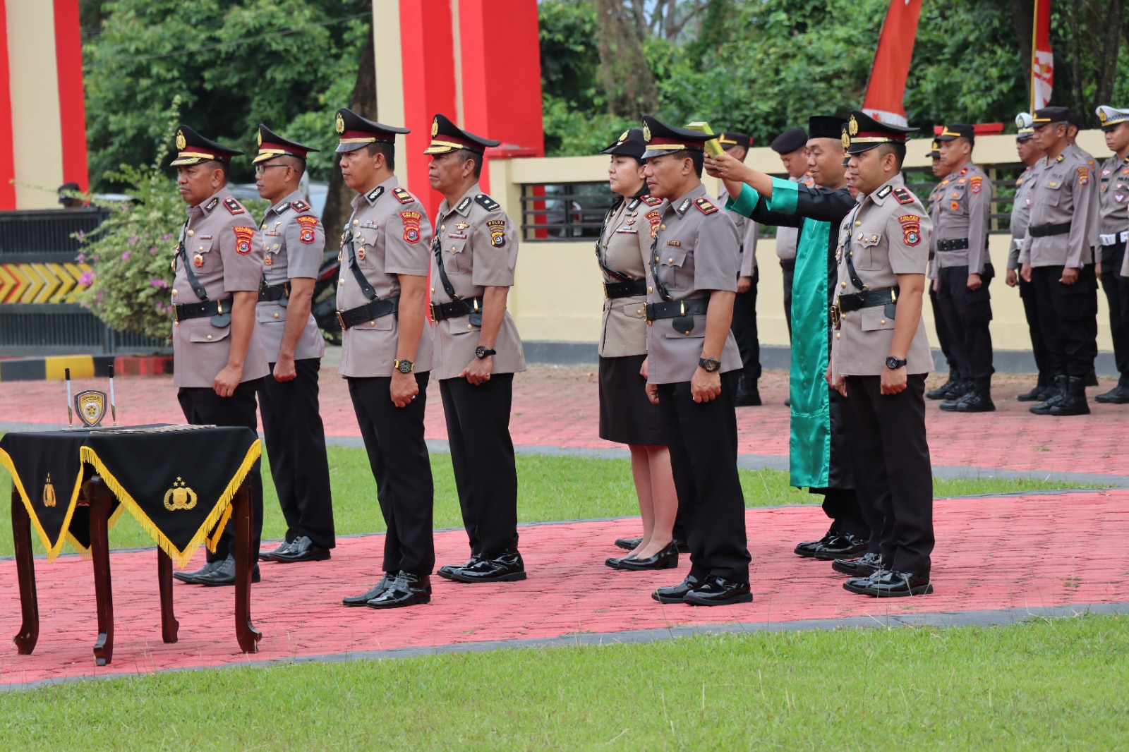 Kapolres Konawe AKBP Ahmad Setiadi SIK memimpin upacara serah terima jabatan (Sertijab) Wakapolres, Kabagops, Kapolsek dan Kabagren Polres