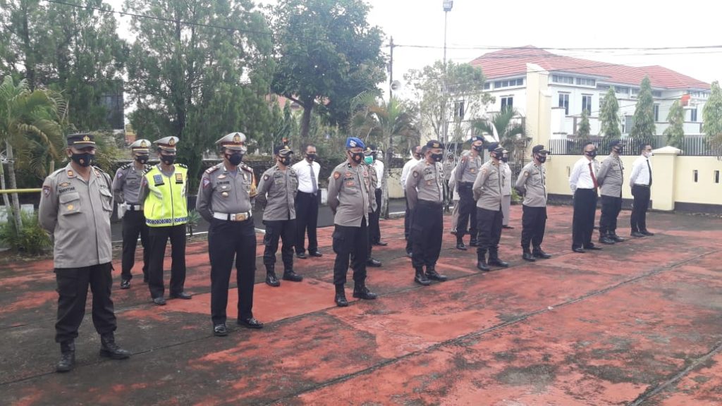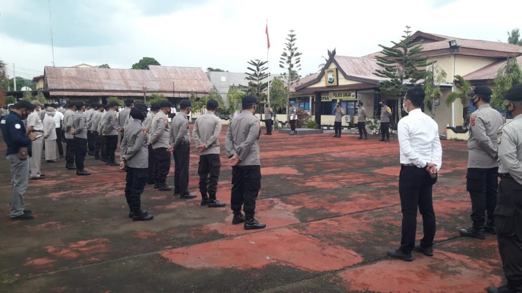 Kapolres Sinjai mengawali arahannya dengan menyampaikan patut kita bersyukur kepada Tuhan Yang Maha Kuasa atas limpahan rahmat dan ridhonya sehingga sampai saat ini kita tetap dalam lindungannya dan kita dapat melaksanakan tugas yang merupakan kewajiban kita, apalagi ditengah pandemi Covid-19 ini, kita memohon perlindungan dan tetap mengikuti protokol kesehatan.
