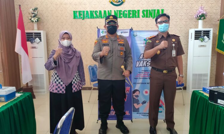Sinjai -Berandankrinews.com. Kepala Kepolisian Resor Sinjai Ajun Komisaris Besar Polisi (Akbp) Iwan Irmawan, S.Ik.,M.Si meninjau vaksinasi di Aula Kantor Kejaksaan Negeri Sinjai, jln. Jend Sudirman, Kel. Bongki, Kec. Sinjai Utara, Kab. Sinjai. Kamis (15/7/2021).