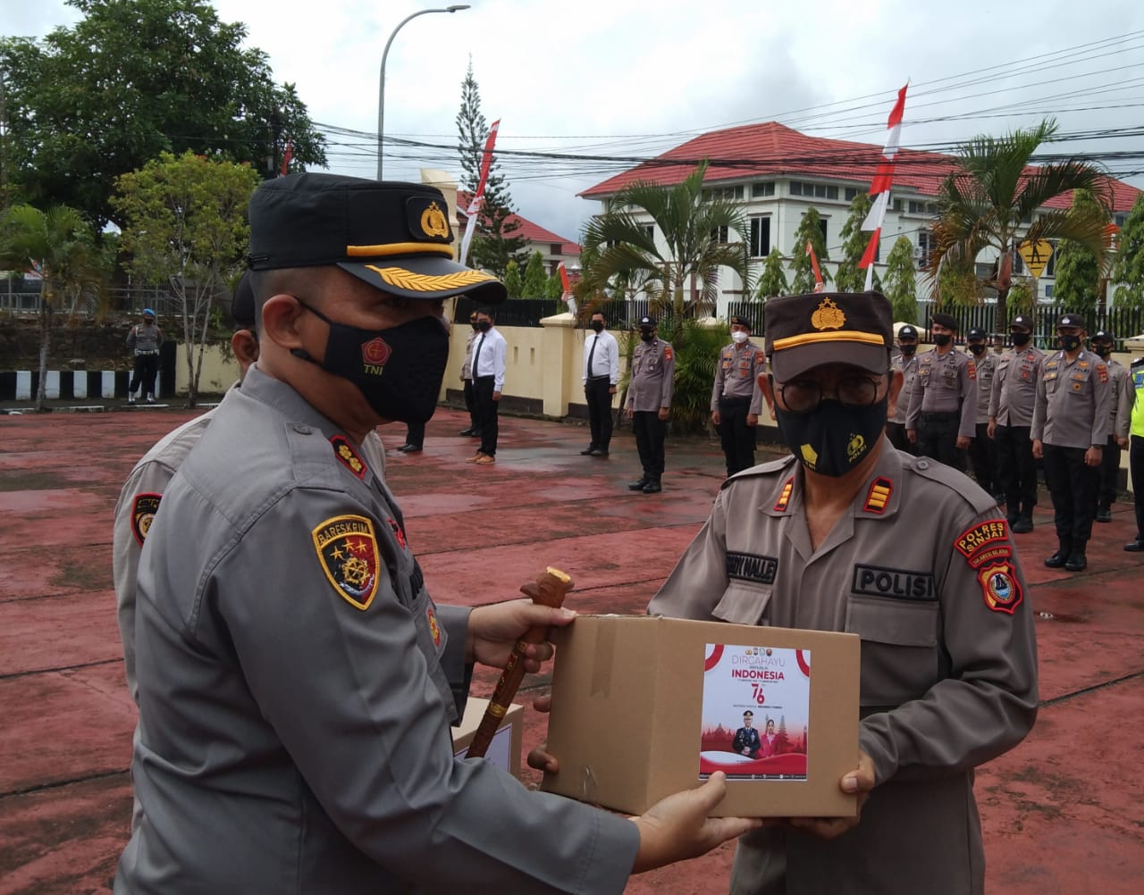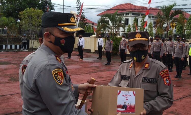 Sinjai -Berandankrinews.com. Kepala Kepolisian Resor Sinjai, Ajun Komisaris Besar Polisi (Akbp) Iwan Irmawan, S.Ik.,M.Si pimpin apel Penyerahan Bantuan Sosial dalam rangka peringatan HUT Kemerdekaan RI Ke-76 Tahun 2021 kepada masyarakat prasejahtera yang terdampak covid-19, bertempat dihalaman Mapolres Sinjai, Selasa pagi (10/8/2021) pukul 08.00 wita.