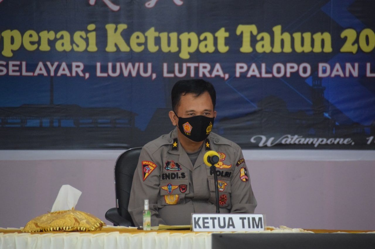 SINJAI –Berandankrinews.com Kepala Kepolisian Resor Sinjai Ajun Komisaris Besar Polisi (Akbp) Iwan Irmawan, S.Ik.,M.Si menghadiri kegiatan Supervisi Operasi Ketupat Tahun 2021 dari Mabes Polri, bertempat diaula Mapolres Bone, Senin sore (10/5/2021).
