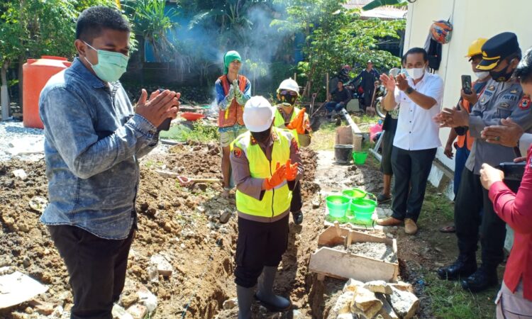 Peletakan batu pertama diawali Kapolres Sinjai dan dilanjutkan oleh Wakapolres Sinjai, para kabag dan Kasat Polres Sinjai.