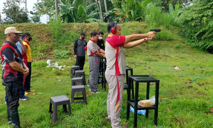 Kegiatan latihan yang dipimpin langsung oleh Kapolres Sinjai Akbp Iwan Irmawan, S.Ik.,M.Si dan diikuti oleh Pejabat Utama, para perwira staf dan segenap personel Polres Sinjai dengan tujuan untuk meningkatkan kemampuan penggunaan senjata api personel.