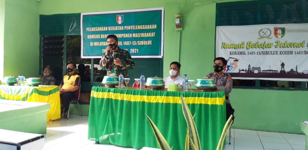 Salah satu kegiatan rutin yang diselenggarakan Koramil 1407-13 Sibulue setiap triwulan yakni Komunikasi Sosial (KOMSOS) bersama Komponen Masyarakat. Kegiatan ini dalam rangka meningkatkan kerjasama serta membangun Silaturahmi dengan masyarakat serta menyamakan persepsi tentang perkembangan situasi yang ada.