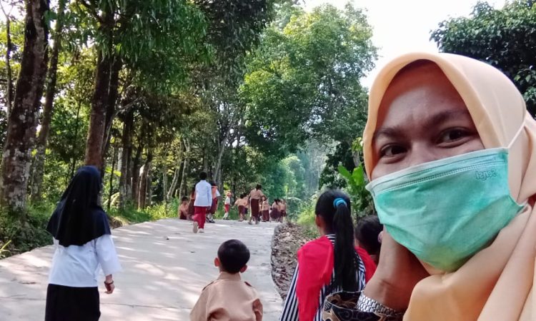 Bersama dua orang guru honorer lainnya, Eka Trisnawati, saat ini mereka mengajar 108 orang siswa/i yang ada di kampung tersebut. Karena sarana pendidikan di sekolah masih terbatas, jadwal belajar para siswa/i dibagi menjadi dua waktu. Kelas 1, 2 dan 3 masuk pagi, selanjutnya kelas 4, 5 dan 6 masuk di siang harinya.