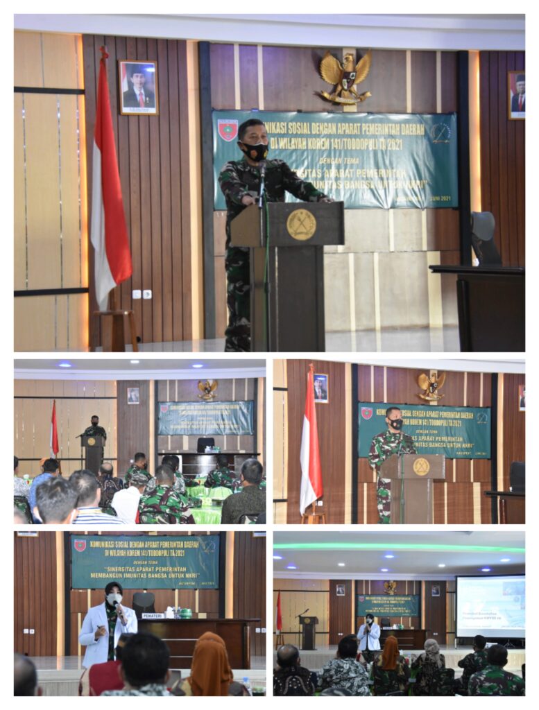 Sambutan Danrem 141/Toddopuli yang dibacakan oleh Kasrem 141/Tp Kolonel Inf Heri Purwanto, S.E yang intinya Komunikasi Sosial ini merupakan wadah untuk meningkatkan kerja sama yang semakin erat antara Korem 141/Toddopuli dengan Aparat Pemerintah Daerah, sehingga tercapai pemahaman tentang empat pilar (Pancasila, UUD 45, NKRI, Bhinneka Tunggal Ika) sebagai konsensus dasar kehidupan berbangsa dan bernegara dalam menghadapi berbagai permasalahan yang timbul dalam kehidupan masyarakat. “Ungkapnya.