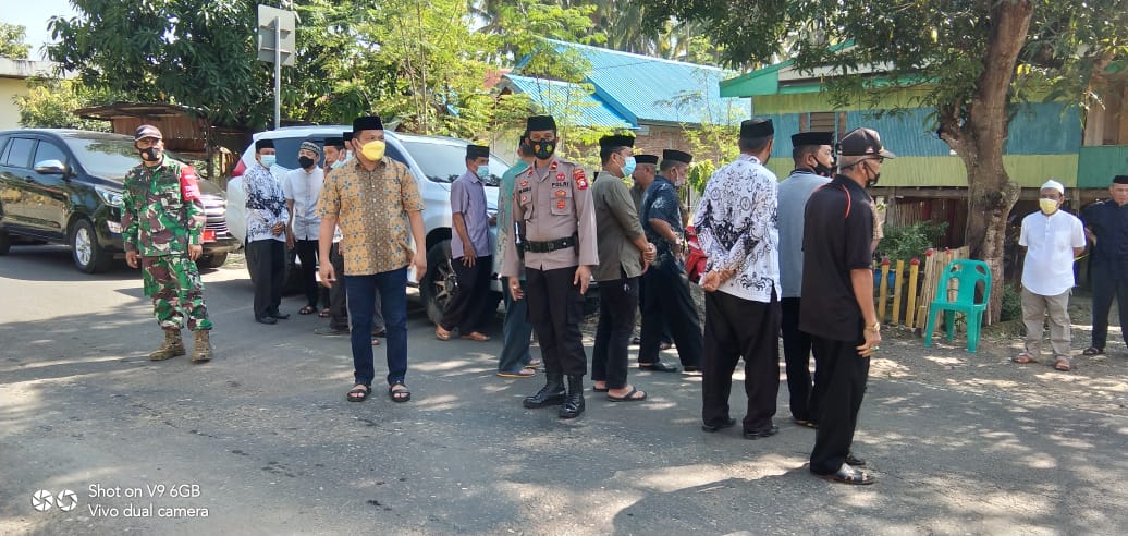 Pada kesempatan itu Waka Polsek Lamuru Polres Bone Ipda Muh. Suaib juga terlihat menghimbau warga yang datang melayat agar tetap menerapkan protokol kesehatan.