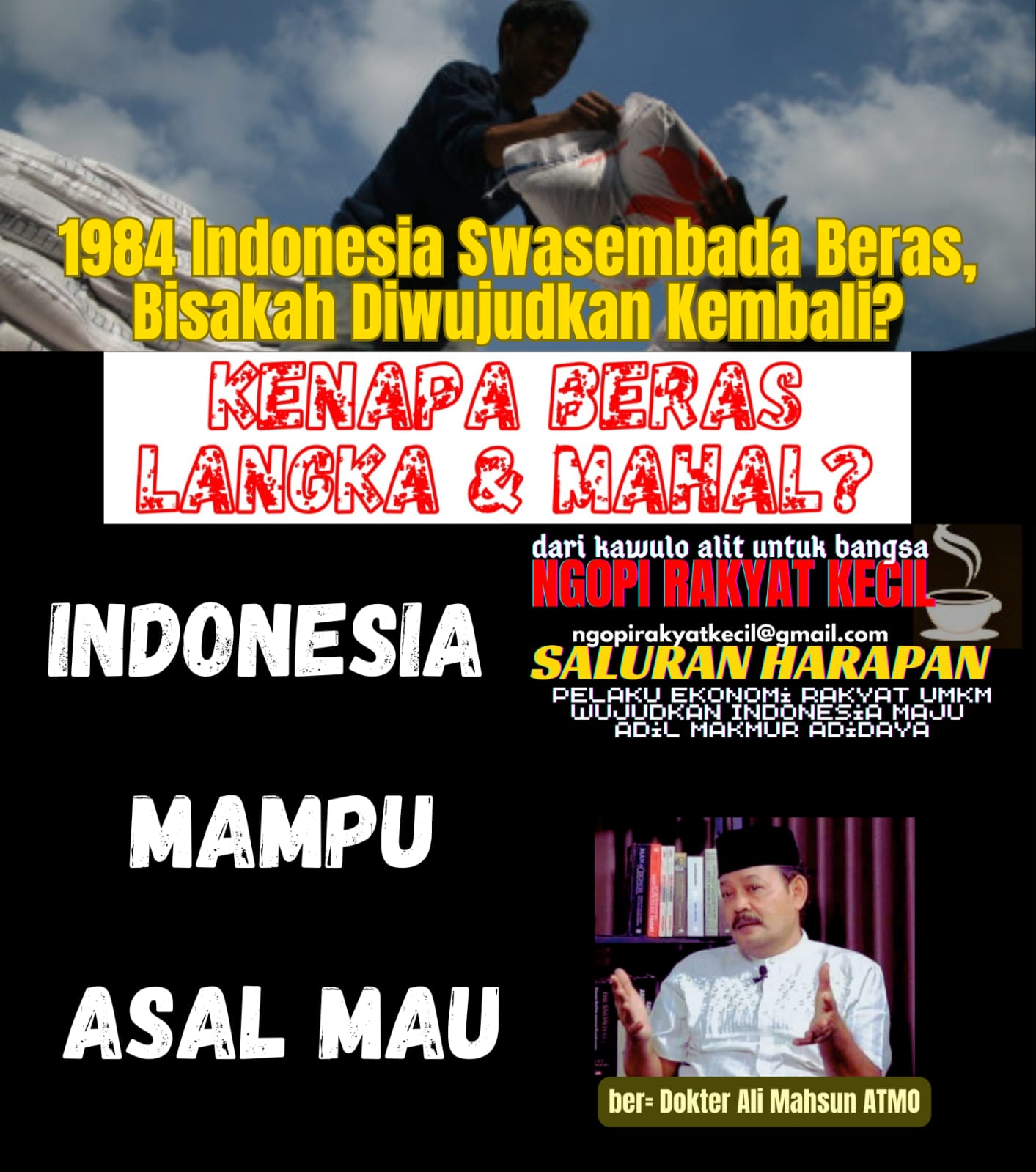 Lebih lanjut dokter ahli kekebalan tubuh yang sudah 13 tahun sejak 2011dedikasikan diri mendampingi pelaku ekomomi rakyat UMKM menegaskan, tahun 1984 Indonesia catatkan diri swasembada beras dengan produksi 25,8 juta ton per tahun, keluar dari importir beras terbesar dunia 1967-1970-an.