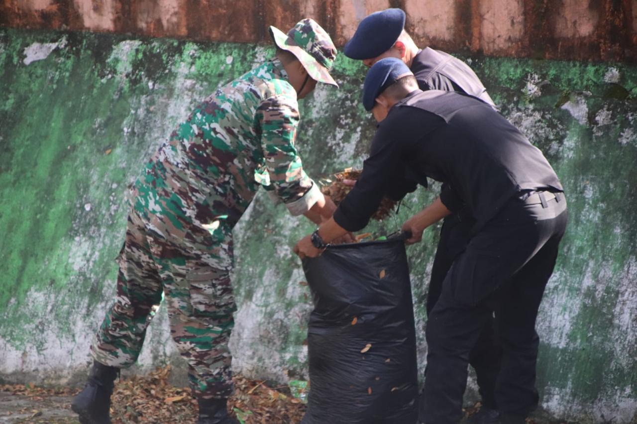Personel gabungan TNI, Polri bersama warga Kelurahan Macege melaksanakan kerja bakti pembersihan sampah di pinggiran sungai dan pasar sentral lama, Jumat (27 September 2024).