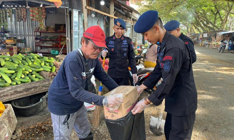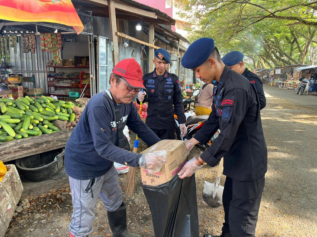 Personel gabungan TNI, Polri bersama warga Kelurahan Macege melaksanakan kerja bakti pembersihan sampah di pinggiran sungai dan pasar sentral lama, Jumat (27 September 2024).
